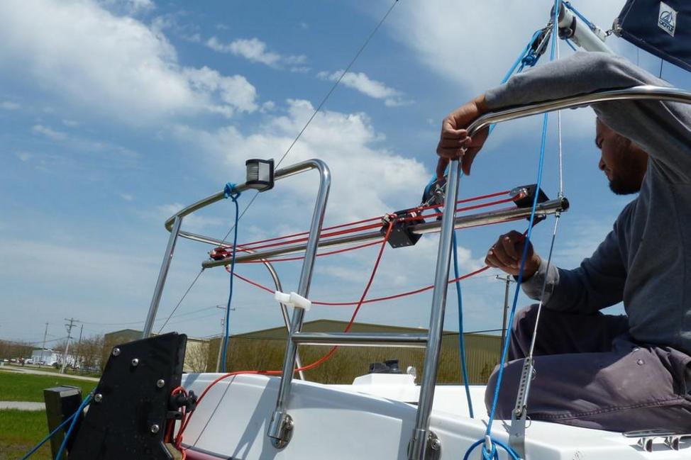 > I would invite the readers to go back and reread my description of the evolution of the mainsail traveler on S/V Dynamic Equilibrium given earlier in this e-mail thread. The bar style traveler that mounts on the backstays has certain issues, especially for short handed sailing close hauled. The latest generation traveler (I guess I should start calling it the GB29 Traveler) solves all these issues. It’s yet another example of Stan’s out-of-the-box thinking that results in a clever, elegant solution. Again, if you sail short handed and care about boat speed, the GB29 Traveler is a game changer! No, I don’t get any commissions from Stan for this endorsement, although I ought to considering how much pushback I’m getting! Stan, I don’t happen to have any pictures of the GB29 Traveler as installed, my boat is still in winter storage, and I don’t have a lake to float my boat in. Could you publish a picture?